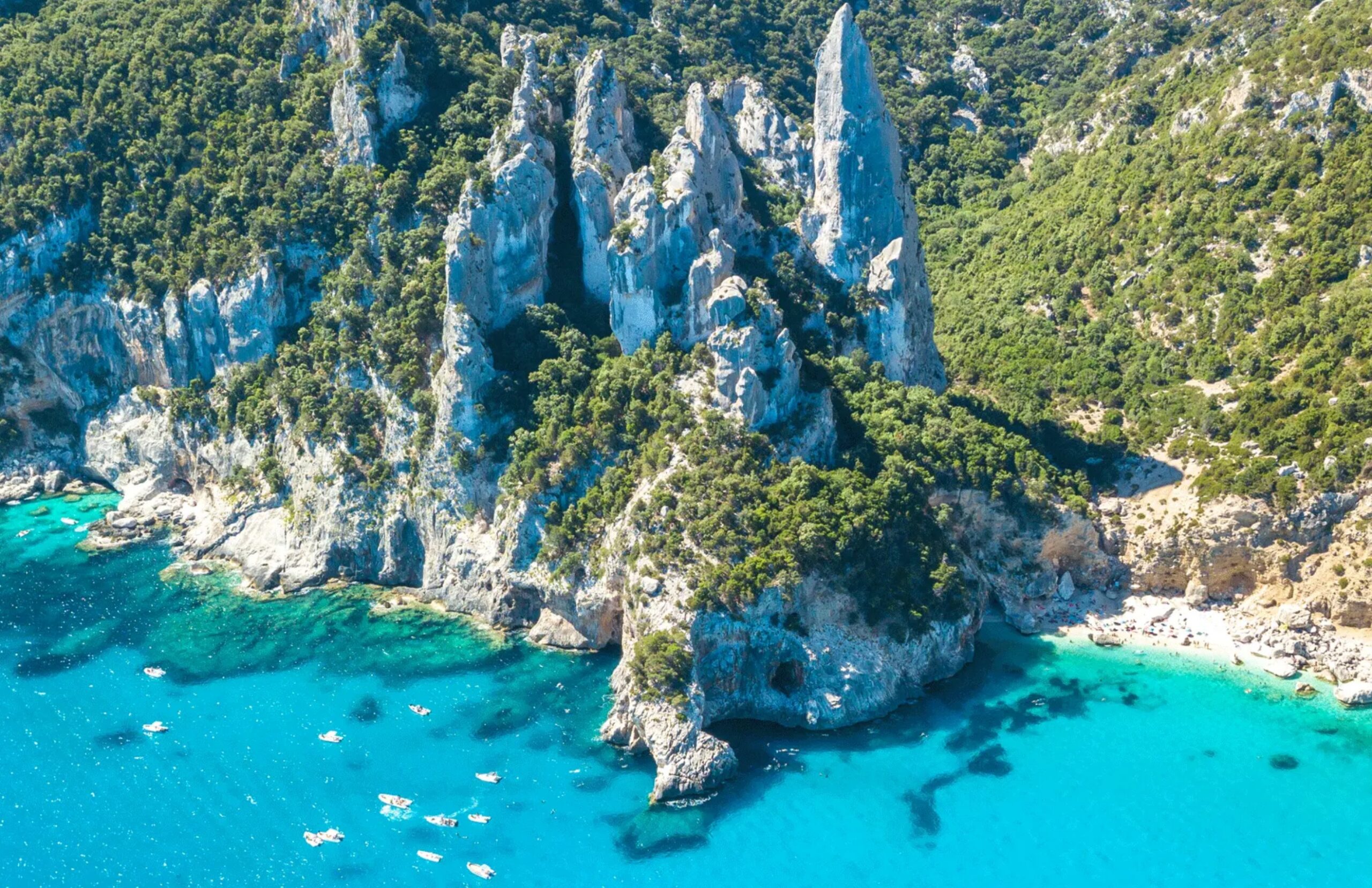 Cala Goloritze feels like more than just a beach – its raw beauty has a way of touching you emotionally the moment you lay eyes on it. Whether you’re looking down from the viewpoint above or standing at the shore with your feet in the water, the scene is truly breathtaking. While the entire Baunei Coast is stunning, Cala Goloritzé stands out, thanks in part to its dramatic 143-metre limestone pinnacle, reminiscent of something out of a cathedral. The water here is unbelievably clear and perfect for swimming, but what truly sets this beach apart are the strong conservation efforts that protect it. Declared a natural monument in the 1990s, Cala Goloritzé remains remarkably preserved. Access is limited to those who hike in – with a restricted number of tickets sold daily – or to swimmers arriving from boats moored 200 metres away, behind a protective barrier that keeps the beach free from boat traffic. It’s the perfect blend of unspoiled natural beauty and a beach experience unlike any other.